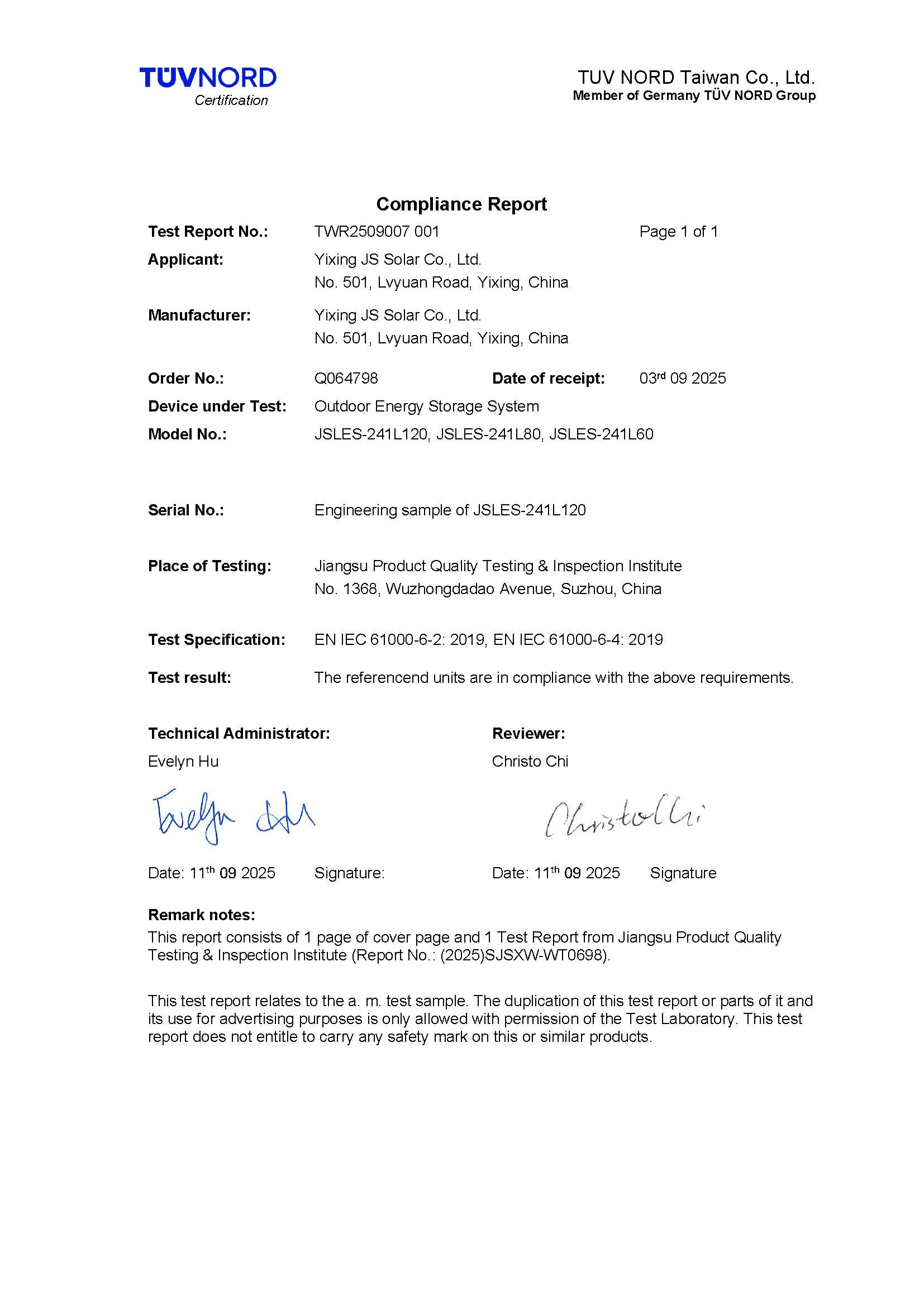 YIXING JS Solar Co., Ltd.(the stock code: 697269)founded in 2004, is a professional solar products manufacturer with different series production bases distributed in Nantong, Jiaxing, Shaoxing, Yangzhou, etc. Capacity reach to 20GW. It specializes in the production of solar products, such as solar cells, solar photovoltaic panels, solar inverters, mounting systems, photovoltaic power stations, PV storage system, etc.